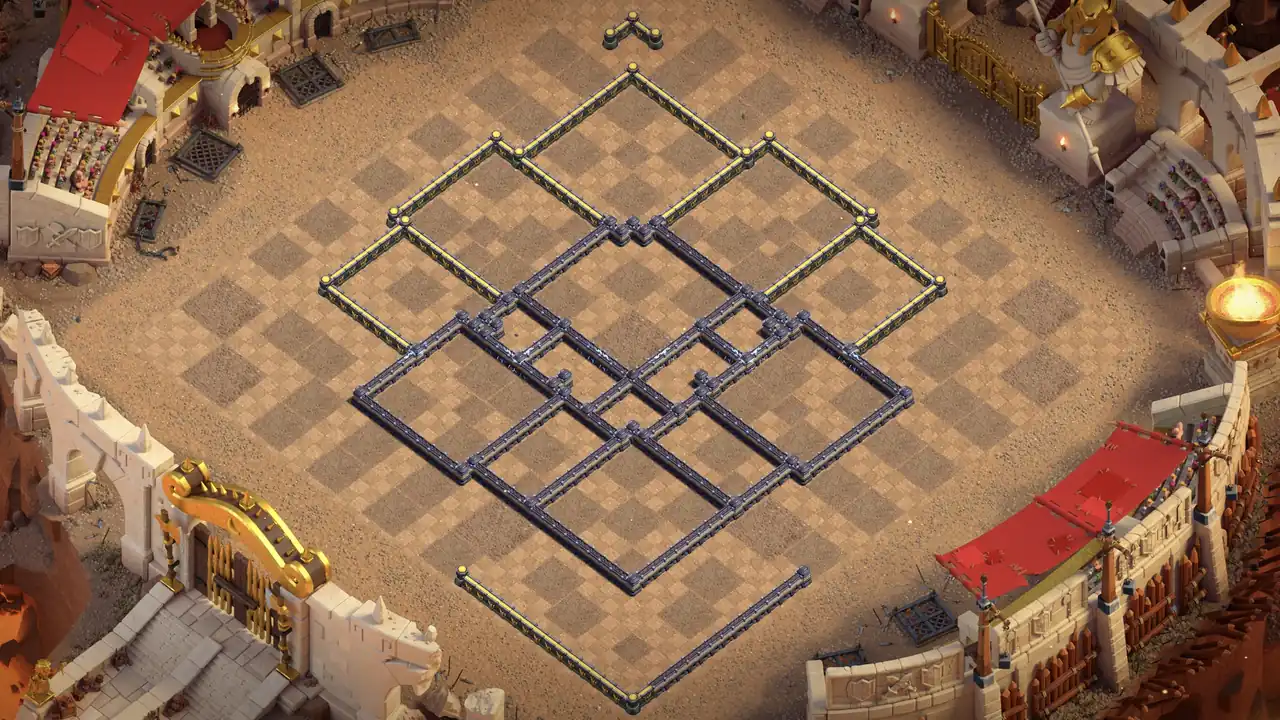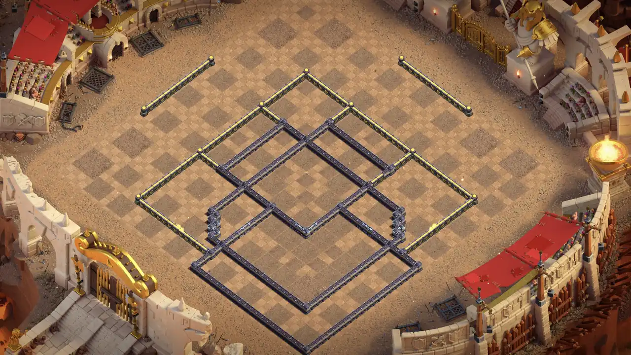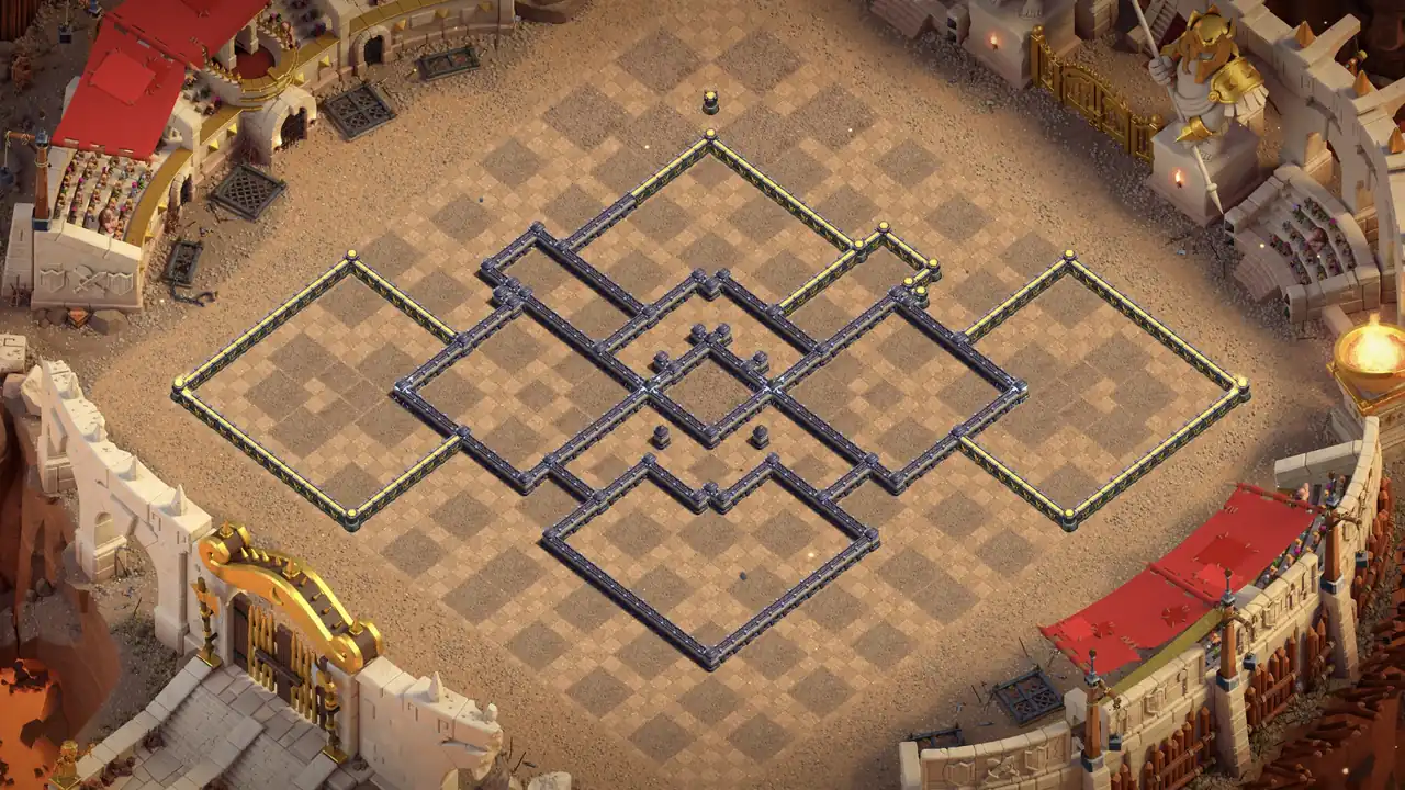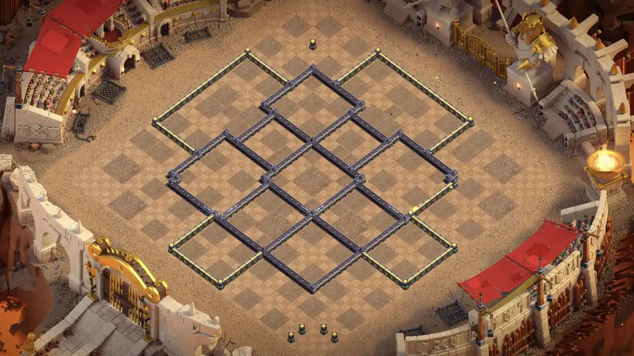 ผังนี้แกล้วชอบมาก ไม่ใช่แค่กำแพงที่ออกแบบอย่างสวยงาม แต่เป็นการสร้างโซนอันตราย ระเบิดอากาศอยู่กลางฐาน จุดอ่อนคือลูกไฟ หากผู้โจมตียิงแม่น จะเสียอาวุธหลายชิ้น แต่ก็ยังมีโซนอาคมคลุ้มคลั่งอีกหนึ่งจุด ซึ่งไม่ง่ายที่จะคว้าสามดาวจากบ้านหลังนี้