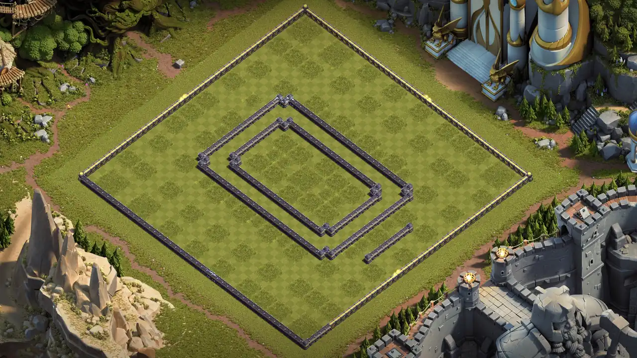 สมัยนี้ผู้คนนิยมปล้นด้วยสูตรขวานล้วนเพื่อเก็บ 50% แกล้วเลยออกแบบผังบ้านฟาร์มสำหรับป้องกันทรัพยากร กำแพง 2 ชั้นทำให้ขวานเจาะเข้าไปกลางฐานและปล้นทรัพยากรไม่ได้ พอใช้จริงแล้วไม่ค่อยมีคนใช้ขวานมาตี แต่จะเป็นสูตรอื่น เช่น มังกรสแปม พอกันได้บ้างครับ