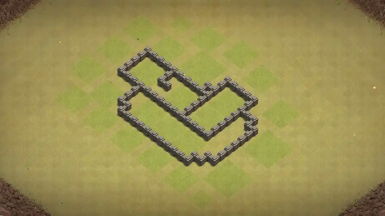 - ผังนี้ป้องกัน 3 ดาวแบบไม่สมมาตร คู่ต่อสู้ต้องคิดหนักเมื่อโจมตี ป้อมพลุอยู่กลางฐานในกำแพงพร้อมกับดักสปริงดักยักษ์
